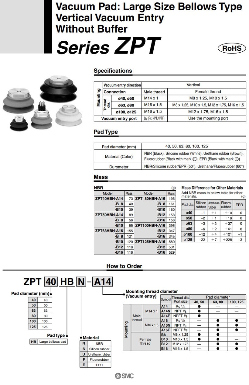 Agent vacuum pad ZPT80HBNJ25-B01-A18 SMC
